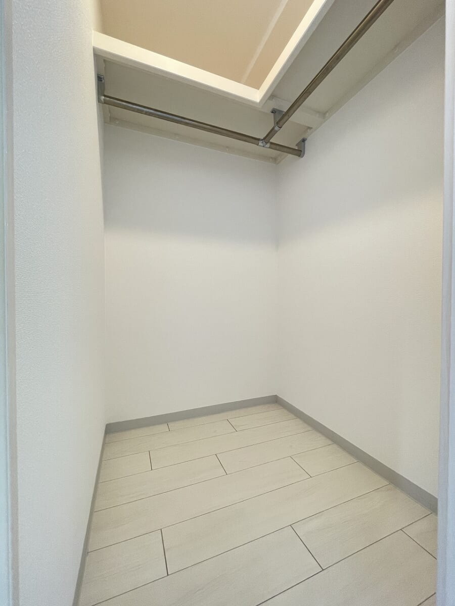洋室にはウォークインクローゼットが設置されており、衣類や小物を整理整頓しやすく、生活空間を広く使える設計です。ひとり暮らしに必要な荷物を十分に収納できるサイズ感で、季節ごとの衣替えや趣味のアイテムもスッキリ片付けられます。限られたスペースでも収納力を確保しているため、快適で整った暮らしをサポートしてくれます。