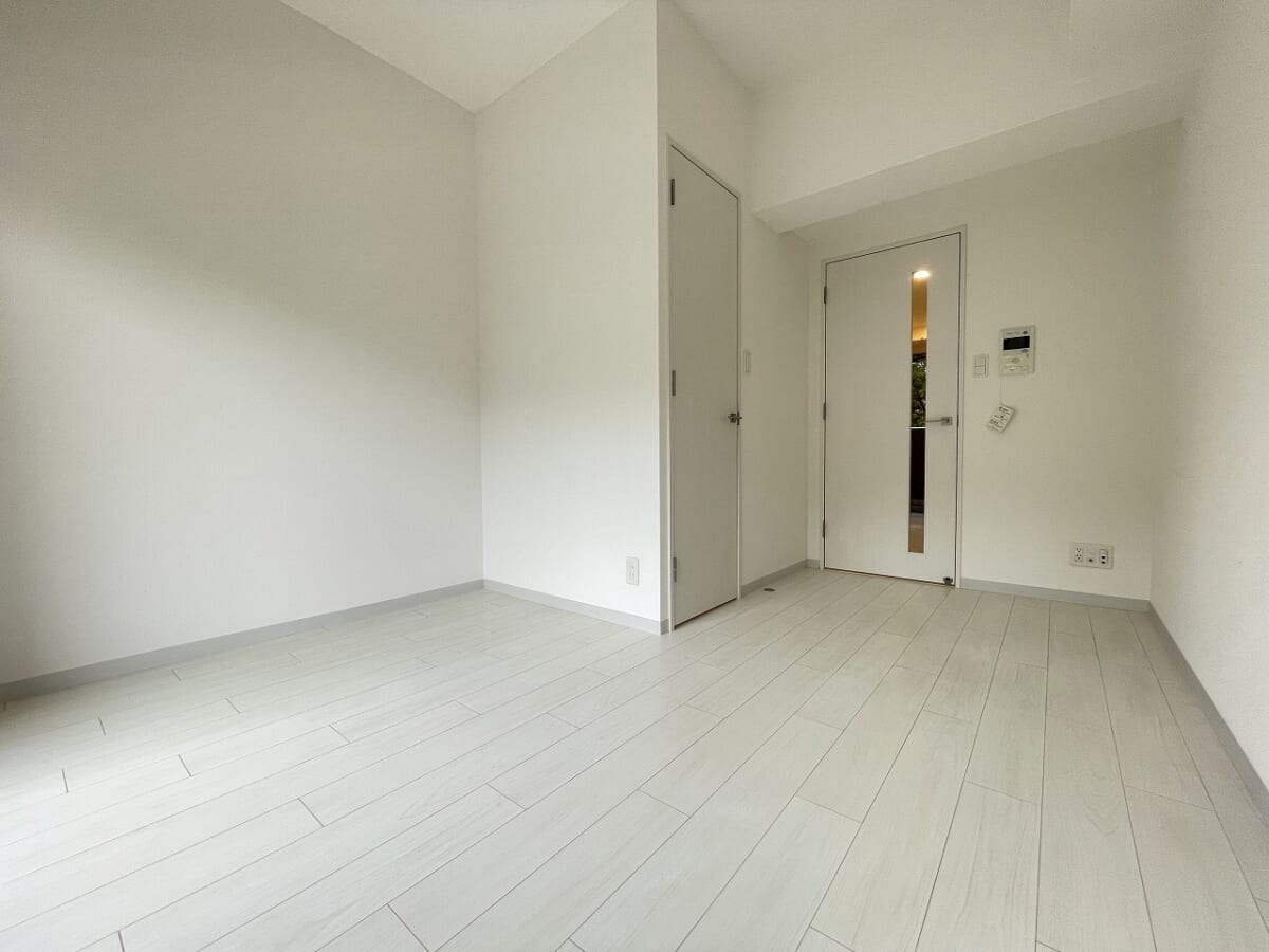6畳の洋室は、北西向きで落ち着いた光が差し込み、日中もまぶしすぎない穏やかな明るさが魅力です。白基調のシンプルながらも上質さを感じる内装は、単身の方にぴったりです。家具配置のしやすい間取りで、デスクワークやリラックスタイムも快適に過ごせます。