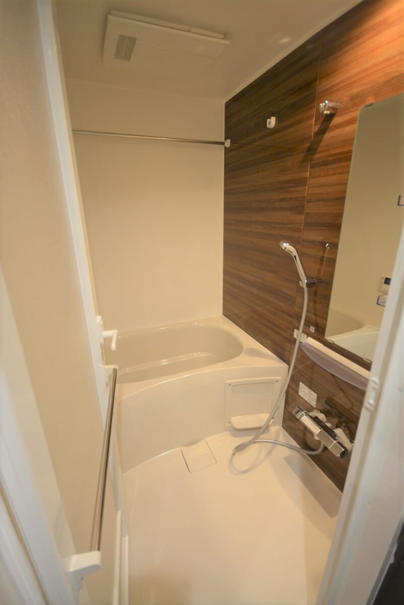 バスルームには乾燥機能を搭載しており、雨の日や夜間でも洗濯物をしっかり乾かすことが可能。湿気やカビ対策にもなるため、清潔感を維持しやすいのも魅力です。コンパクトながら清潔感のある設計で、毎日のバスタイムが心地よいリラックスタイムに。シンプルで使いやすく、掃除もしやすい作りになっています。
