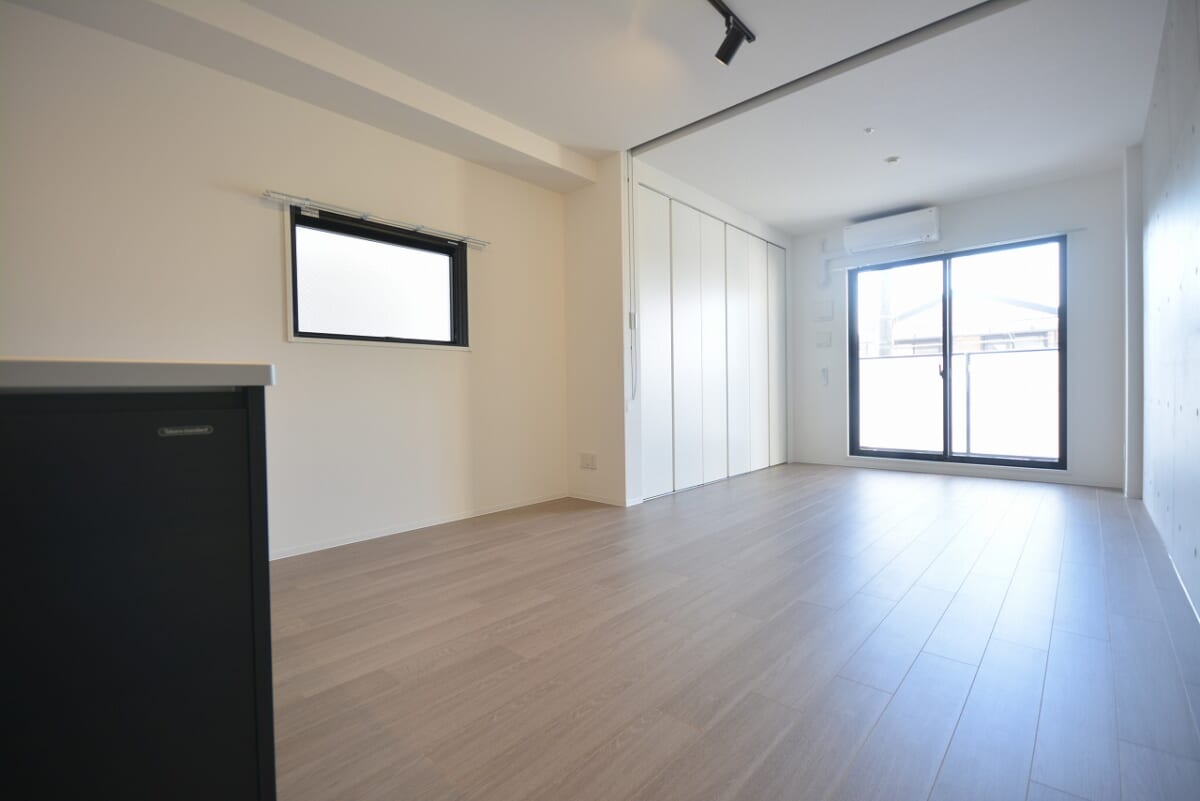 明るい西向きのLDKは、夕方の柔らかい日差しが差し込み、リラックスできる空間で10.3畳の広さがあるので家具の配置も自由自在です。シンプルかつおしゃれな内装は、カフェ風インテリアやモダンスタイルにもぴったりです。LDKの奥には引き戸で仕切れる5.1畳の洋室。プライベート空間としても寝室としても使えるため、同棲カップルにも最適です。引き戸タイプなので開放感もあり、家族や友人を招く際はLDKとつなげて広々と使うことも可能です。
