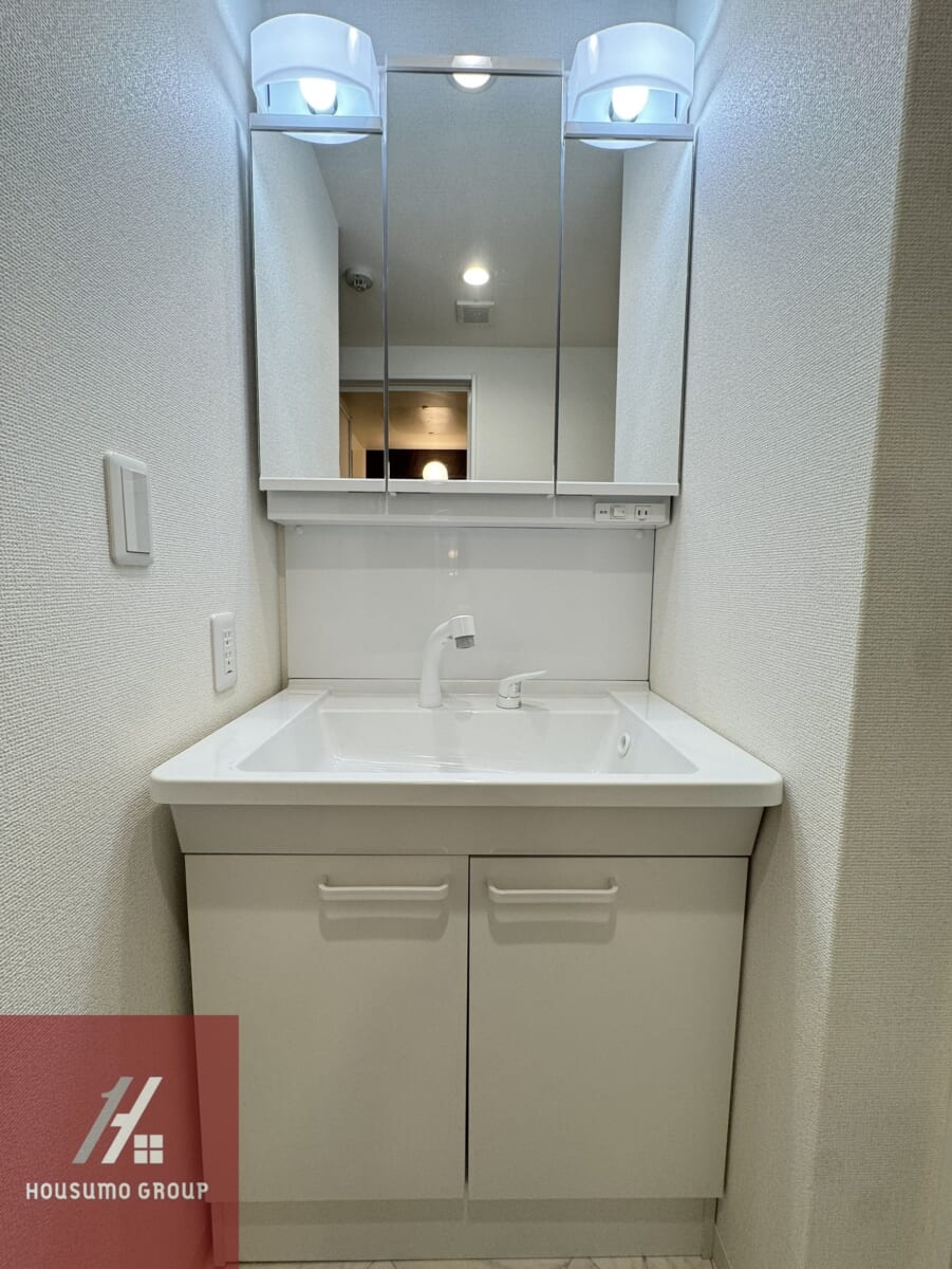 脱衣室には独立洗面台を完備されているので、朝の身支度や帰宅後の手洗い、夜のスキンケアタイムまで、使い勝手がよくストレスのない設計です。鏡裏収納付きですっきりとした清潔感ある見た目に◎脱衣室がしっかりと区切られているので、来客時のプライバシーもしっかりと確保できます。