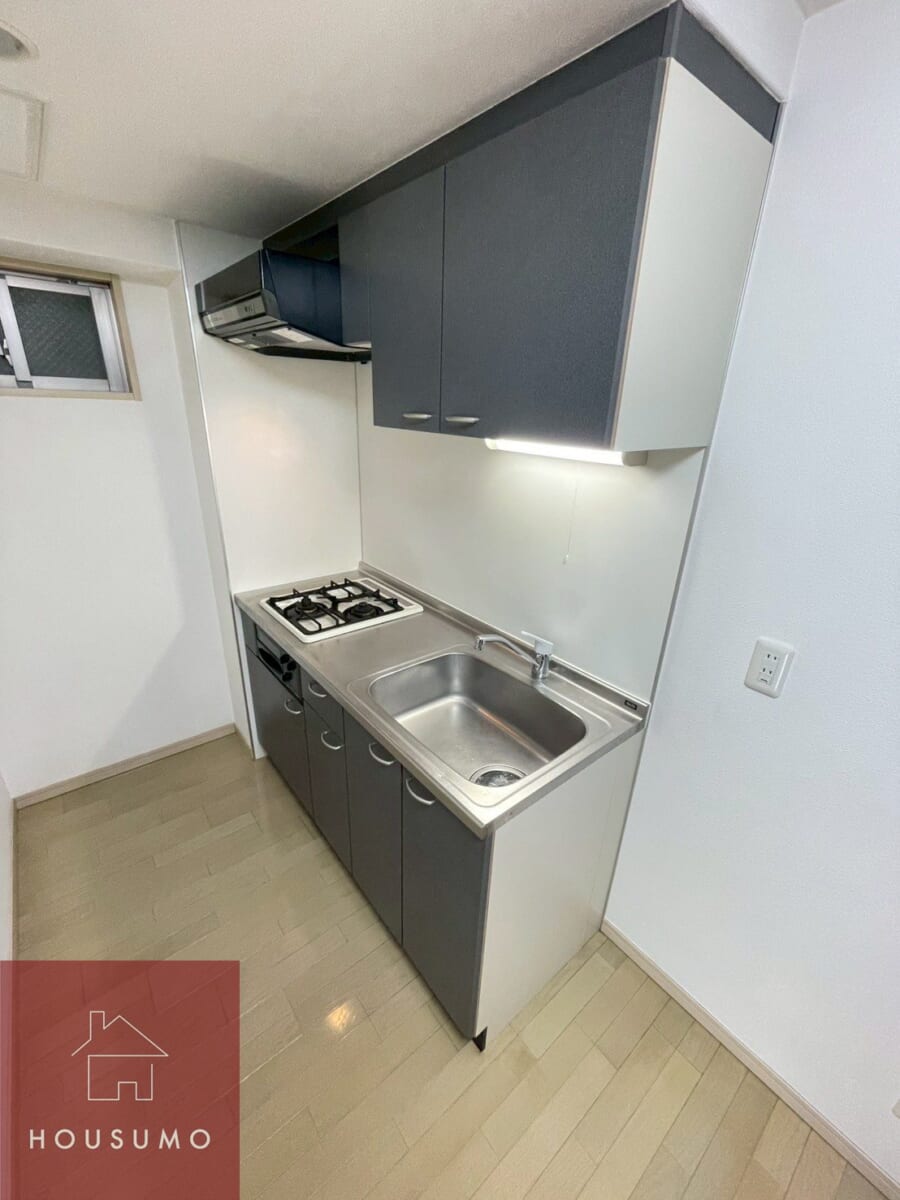 このお部屋の特徴としてまず挙げたいのが「キッチンスペースがゆったりしている」という点。1Kでは狭くなりがちなキッチン横の足元が広めに確保されており、冷蔵庫やラック、調理家電を置いても作業しやすい余裕があります。自炊派の方にとっては、コンロ周りやシンクが使いやすいだけでなく、動きやすい“空間そのものの広さ”が料理のしやすさにつながる大きな魅力です◎