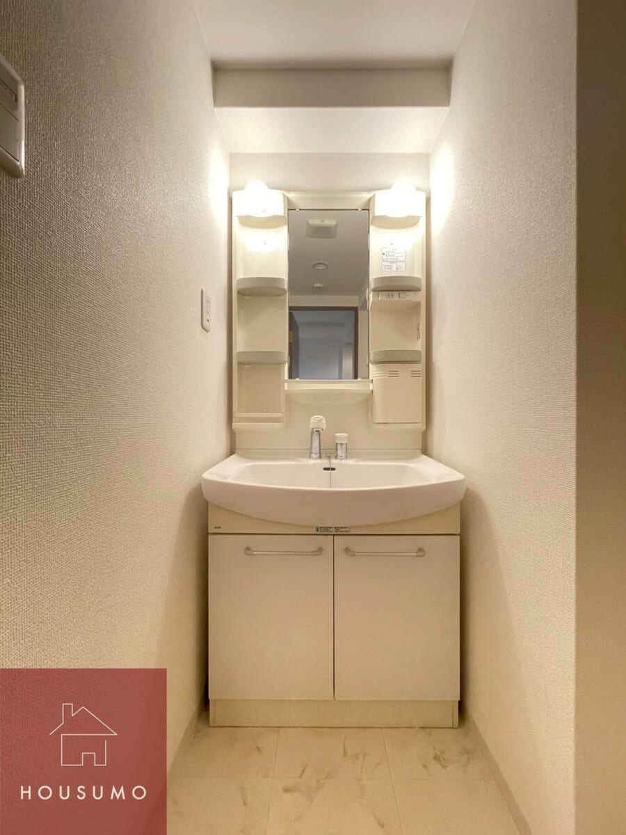 脱衣室には、独立洗面台と洗濯機置き場が設置され、朝の支度も洗濯も“その場で完結”できる使い勝手の良い空間です。動線が短く、洗濯物の予洗いから洗濯機へ移す流れが非常にスムーズ。忙しい日でもムダな動きがなく、家事効率をしっかり支えてくれます。独立洗面台は、身支度に必要なアイテムをまとめて置けるため、生活リズムを整えたい方にもおすすめです。シンプルながらも必要な機能が揃った脱衣室は、一人暮らしでも“自然と暮らしやすい”と感じられる実用的なスペースです◎