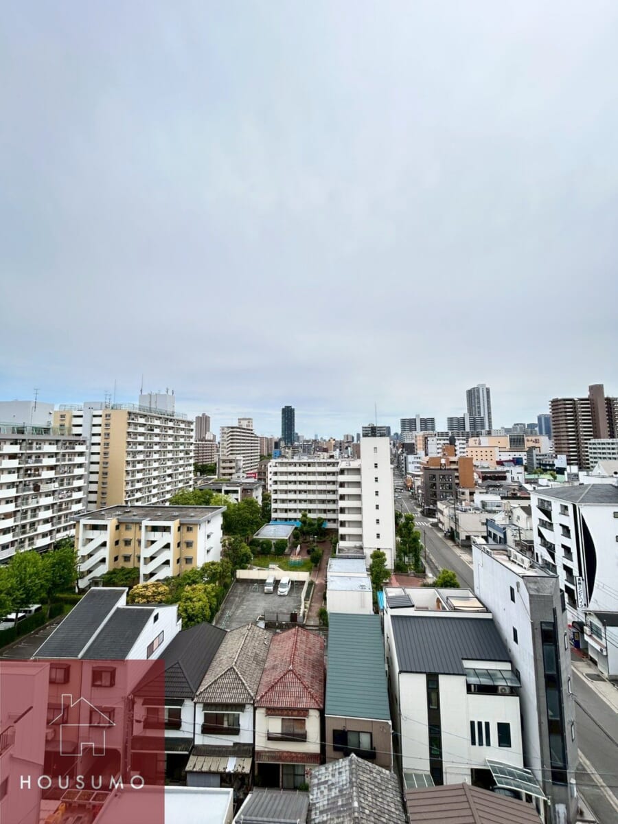 8階部分に位置し、周囲に高い建物が少ないため、視界が開けた気持ちの良い眺望が広がります。正面を遮る建物がないことで、圧迫感を感じにくく、南向きならではの明るさと開放感をしっかりと実感できるのが魅力。時間帯によって変わる空の表情や街の景色を楽しめ、室内にいながら外とのつながりを感じられます。