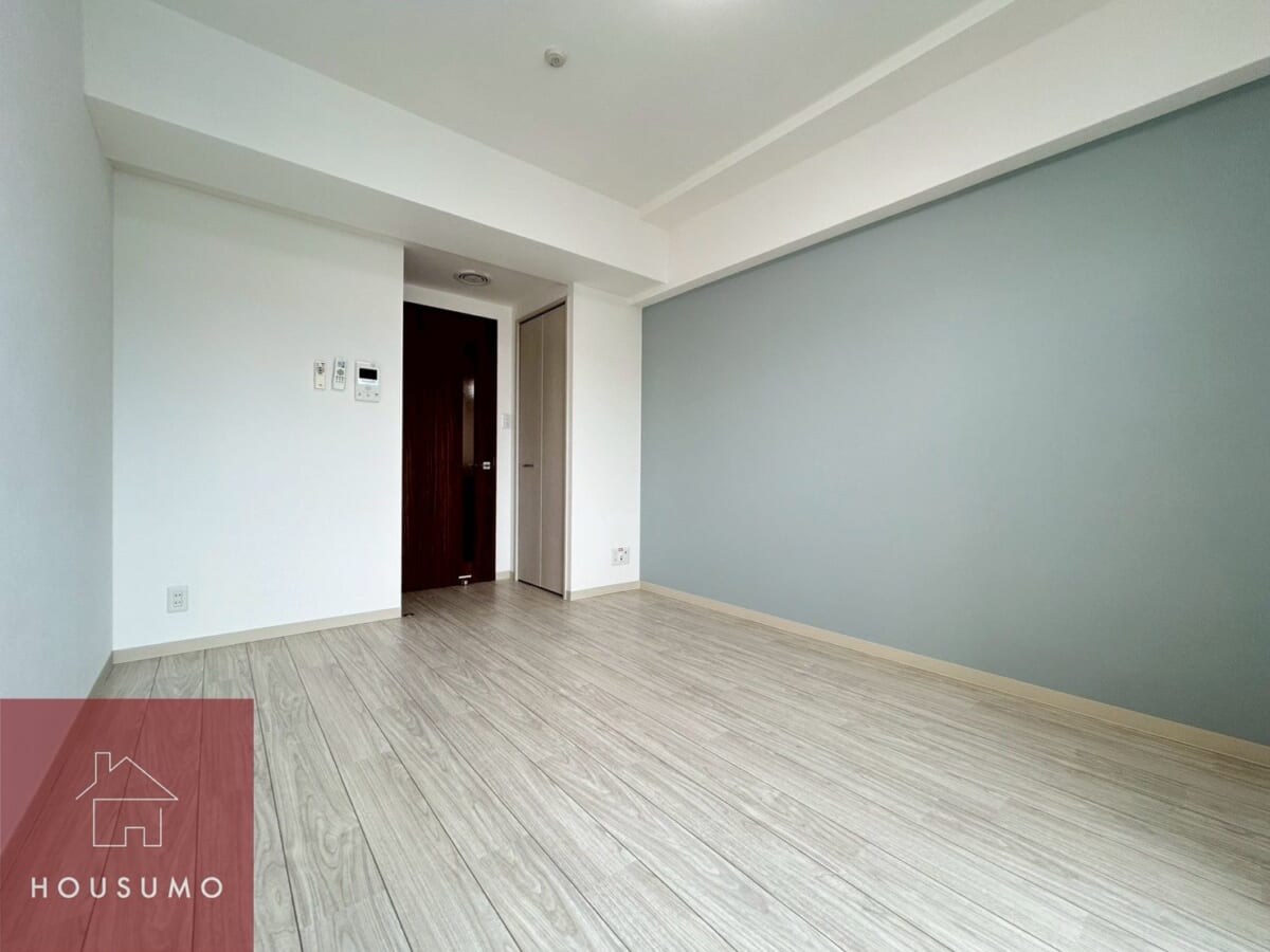 7.1帖の洋室は、1Kタイプとしてはゆとりを感じられる広さが魅力。南向きのため日中は自然光が入りやすく、室内全体が明るく開放的な印象です。8階部分に位置しているため、周囲の視線が気になりにくく、落ち着いたプライベート空間を確保できます。ベッドやデスクを配置しても動線を取りやすく、在宅ワークや趣味の時間も快適。シンプルな間取りだからこそ、インテリアの自由度が高く、自分らしい空間づくりを楽しめます◎