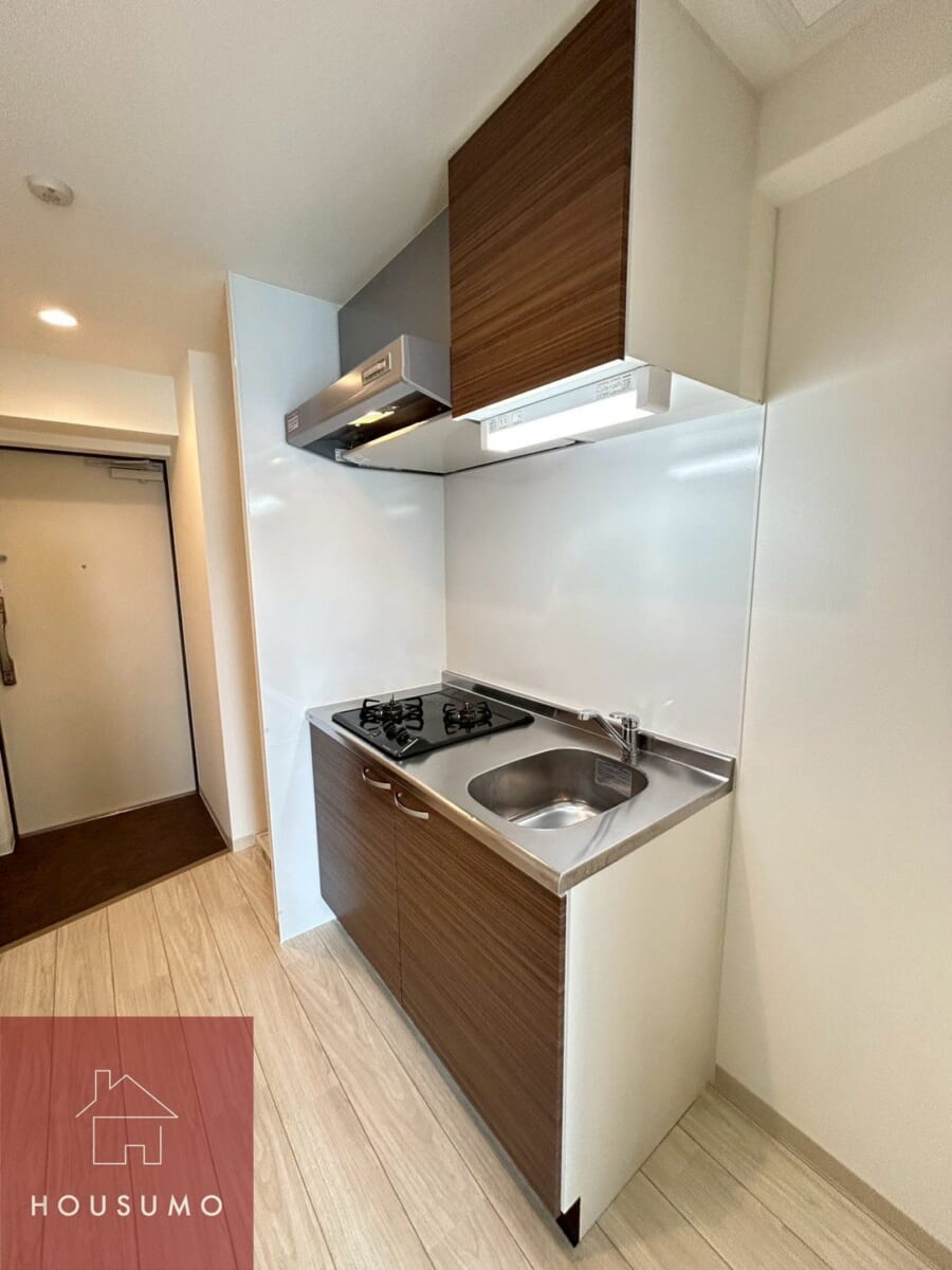 キッチンは居室と程よく距離が取られた配置で、生活空間に匂いがこもりにくい設計。調理スペースとシンクがしっかり確保されており、自炊をする方にも使いやすい仕様です。収納も備わっているため、調理器具や食器を整理しやすく、キッチン周りをすっきり保てます。コンパクトながら実用性を重視したつくりで、毎日の家事をストレスなくこなせます◎