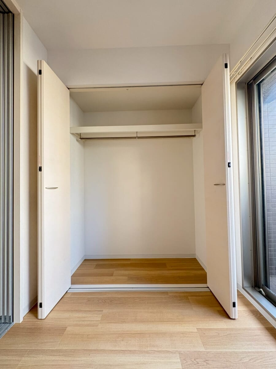 洋室にはクローゼットが設置されており、衣類や小物を整理整頓しやすく、生活空間を広く使える設計です。ひとり暮らしに必要な荷物を十分に収納できるサイズ感で、季節ごとの衣替えや趣味のアイテムもスッキリ片付けられます。限られたスペースでも収納力を確保しているため、快適で整った暮らしをサポートしてくれます。