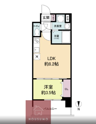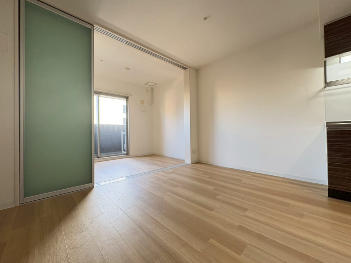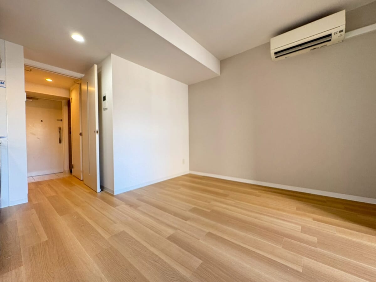 LDKは約8.2帖と、1LDKの中でもバランスの取れた広さで、キッチンとリビングスペースが自然にゾーニングされており、食事とくつろぎの時間をしっかり切り替えられる間取りです。ソファとローテーブルを置いても圧迫感が出にくく、在宅ワーク用のデスクを置く余裕もあります。北向きながらも8階部分のため、外からの視線を気にせず落ち着いた時間を過ごせます。さらにインターネット使用料無料なので、動画視聴やリモートワーク中心の方にも嬉しい環境です◎
