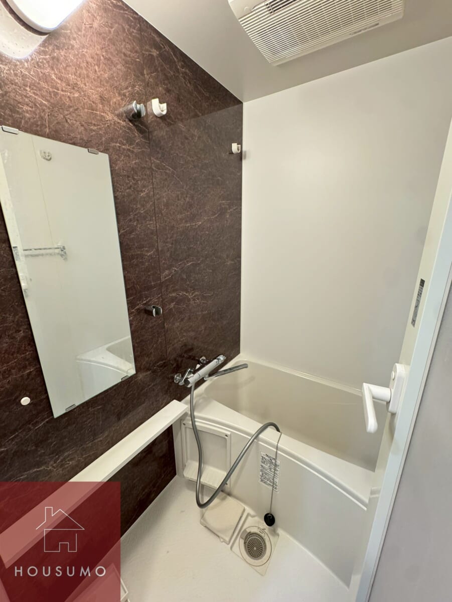 バスルームはシンプルで無駄のない造りになっており、毎日の入浴を快適にサポートしてくれます。掃除もしやすく、清潔感を保ちやすい点が魅力。浴槽は一人暮らしやご家族でもちょうど良いサイズ感で、肩までしっかり浸かれるため、日々の疲れを癒すリラックスタイムを確保できます。シンプルだからこそ、バスグッズや小物で自分好みの空間にアレンジしやすいのもポイントです。