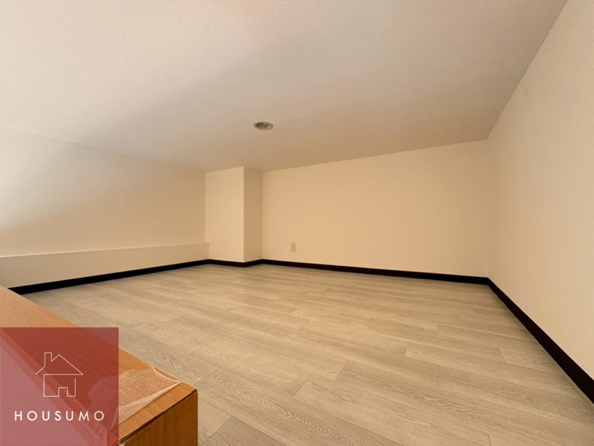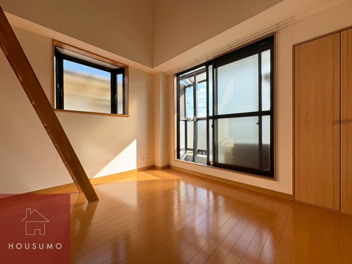 洋室は約6帖と使いやすいサイズ感で、家具配置がしやすいシンプルな間取りのため、ベッドやデスク、テレビボードなども無理なくレイアウトできます。ロフト付きのお部屋だからこそ、洋室部分は「くつろぐ・作業する」空間として割り切って使えるのが大きな魅力です。ロフトは約5.5帖と広さに余裕があり、一般的なロフトよりも実用性の高い設計。寝室として使えば、生活スペースと就寝スペースを分けられ、ワンルーム感を感じにくい暮らしが実現します。また、寝室以外にも収納スペースや趣味部屋として活用できるため、ライフスタイルに合わせた使い分けが可能。縦の空間を有効活用した洋室+ロフトの組み合わせにより、実際の帖数以上の開放感を感じられるのもポイントです。