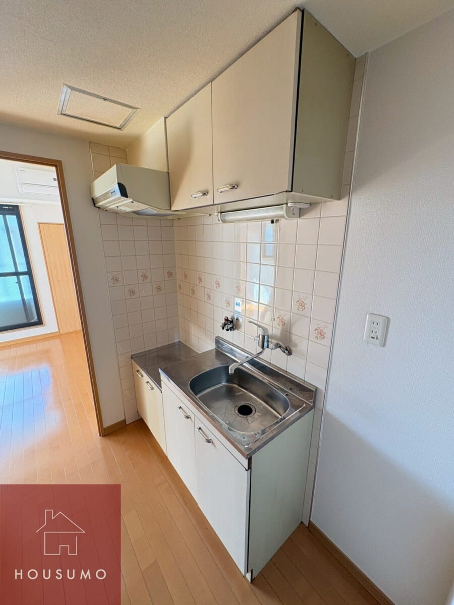 キッチンはコンパクトながらも使い勝手を考えた設計で、毎日の料理がスムーズに。シンク横には作業スペースが確保されており、食材や調理器具を置くことが可能です。コンロは自分で設置するタイプなので、ライフスタイルに合わせてガスやIH、グリル付きと自由に選ぶことができます。