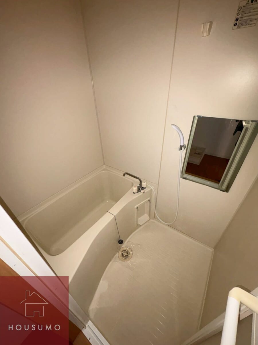 バスルームはシンプルでコンパクトな無駄をそぎ落としたミニマルな空間で、余計な装飾や収納棚がないため、水アカがたまりにくく掃除がしやすいのが特徴です。浴槽には、自動温度調整できる給湯機能付きでぬるめが好きな方も、しっかり温まりたい方も、自分好みの温度設定が可能です。セパレードタイプなので、日常的に湯船につかる方にはぴったりです◎