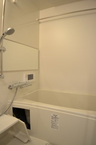 バスルームは、白を基調とした清潔感あふれる空間に、リラックスタイムを格上げする浴室TVが完備されています。ゆったりと湯船に浸かりながらお気に入りの番組を楽しめるため、一日の疲れを癒やすバスタイムがより贅沢なひとときへと変わります。浴室乾燥機も備わっており、天候を気にせず洗濯物を乾かせるほか、冬場の予備暖房や夏場の涼風など、季節を問わず快適に使用できる機能性が魅力です。操作しやすいシングルレバーの水栓や横長の鏡など、モダンで使い勝手の良い設備が揃っており、都会生活の中での質の高いリフレッシュ空間を提供します。